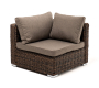"Лунго" угловой модуль из искусственного ротанга вида "гиацинт", вляется неотъемлемой частью лаунж-зоны. В своем основании имеет каркас из алюминия, который вручную оплетен ротангом коричневого цвета.