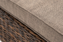 Она имеет каркас из алюминия высокой прочности. Для изготовления используется ручное плетение вида "гиацинт", выполненное из искусственного ротанга. Оттоманка может служить в комплекте с трансформирующимся диваном «Лунго».