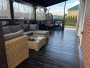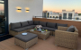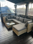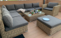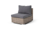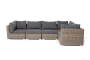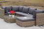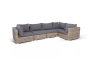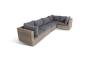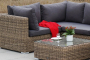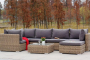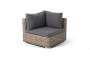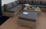 Трансформирующийся диван «Лунгго» может быть использован для размещения пяти человек. Его конструкция выполнена из прочного алюминия. В состав мебели входят три угловых модуля размерами – 850×850×570 мм и два прямых модуля размером – 850×730—670 мм. Материал изготовлен с использованием искусственного ротанга ручного плетёния. В соломенном цвете. Лунго соломенный модульный диван дополняют подушки со съемными чехлами в темно-сером оттенке. Материал для их пошива – полиэстер, плотностью 230 гр/м2. Ткань обрабатывается влагооттягивающей пропиткой для повышения её защитных свойств.