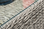 Облегченный алюминиевый каркас, вручную оплетенный искусственным ротангом вида "Гиацинт". Цвет - серый. Журнальный столик с прочной стеклянной столешницей толщиной 5 мм.