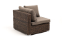 Модульный диван «Лунго» изготовлен из искусственного ротанга вида "гиацинт" коричневого цвета.