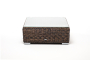 Размер модели – 740×740×300 мм. Компактные габариты позволяют удобно разместить мебельный элемент в месте с ограниченным свободным пространством. Столик имеет прочный алюминиевый каркас. Ручное плетение вида "гиацинт" сделано из искусственного ротанга и представлено в коричневом цвете.