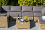 Размер модели – 740×740×300 мм. Компактные габариты позволяют удобно разместить мебельный элемент в месте с ограниченным свободным пространством. Столик имеет прочный алюминиевый каркас. Ручное плетение вида "гиацинт" сделано из искусственного ротанга и представлено в соломенном цвете.