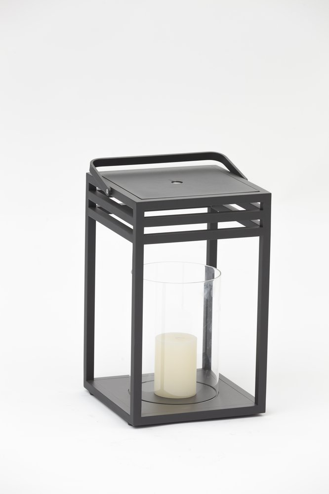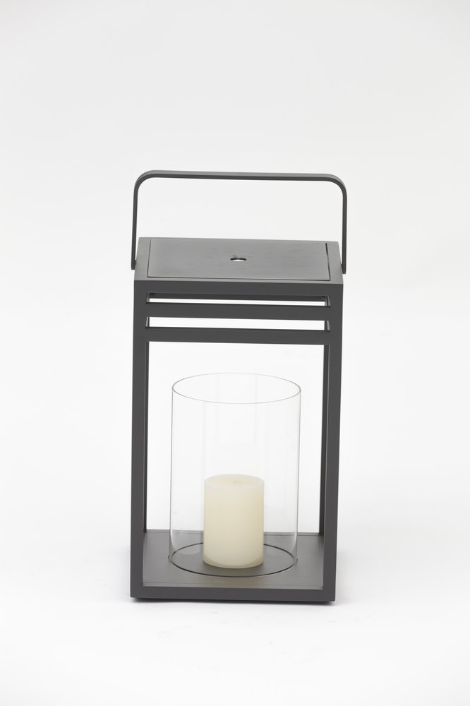 Фонарь из алюминия в нашей серии Lycka. Доступен в нескольких цветах. Создаст уютную атмосферу в вашем патио или зимнем саду. Открывающаяся верхняя часть со стеклянным цилиндром внутри (диаметр 160 мм; толщина 2,5 мм; высота 220 мм), свеча не входит в комплект.