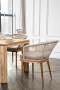 Каркас стульев выполнен из натурального дерева - дуб. Оплетка выполнена вручную современным материалом - роупом. Это эластичные синтетические веревки из высокопрочных полиэфирных волокон, предназначенные для изготовления мебели. Цвет оплетки - бежевый. В комплект входят подушки со съёмными водоотталкивающими чехлами бежевого цвета.