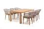 "Витория" деревянный стол из натурального тика, 200х100см 1шт. 2 000Х1 000Х770, "Марсель" стул плетеный из роупа, основание дуб, роуп бежевый круглый, ткань бежевая 6шт. 570Х620Х800,