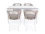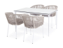 - 4 плетеных стула "Марсель" из роупа, размером - 570х620х800 мм, цвет роупа - бежевый, каркас - белый. "Малага" обеденный стол из HPL 140х80см, цвет молочный, каркас белый 1шт. 1 400Х800Х750, "Марсель" стул плетеный из роупа, каркас алюминий белый шагрень, роуп бежевый круглый, ткань бежевая 4шт. 570Х620Х800,