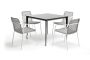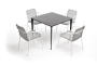 "Малага" обеденный стол из HPL 90х90см, цвет "серый гранит", каркас черный 1шт. 900Х900Х750, "Тунис" стул плетенный из роупа, каркас алюминий белый, роуп светло-серый 4шт. 575Х600Х800,