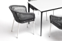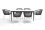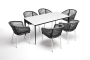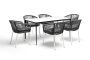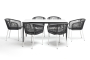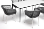 - 6 плетеных стульев "Марсель" из роупа, размером - 570х620х800 мм, цвет роупа - серый, каркас - белый. "Малага" обеденный стол из HPL 160х80см, цвет молочный, каркас черный 1шт. 1 600Х800Х750, "Марсель" стул плетеный из роупа, каркас алюминий белый шагрень, роуп серый круглый, ткань серая 6шт. 570Х620Х800,