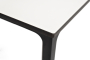 Столешница выполнена из современного высококачественного монолитного компакт-пластик HPL, толщиной 12 мм в молочном цветом. Материал устойчив к высоким температурам, попаданию влаги и может использоваться при любых погодных условиях. Подстолье изготовлено из крашеного алюминия черного цвета.