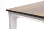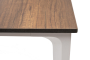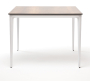 Столешница выполнена из современного высококачественного монолитного компакт-пластик HPL, толщиной 12 мм в цвете "дуб". Материал устойчив к высоким температурам, попаданию влаги и может использоваться при любых погодных условиях. Подстолье изготовлено из крашеного алюминия белого цвета.