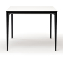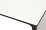 Столешница выполнена из современного высококачественного монолитного компакт-пластик HPL, толщиной 12 мм в молочном цветом. Материал устойчив к высоким температурам, попаданию влаги и может использоваться при любых погодных условиях. Подстолье изготовлено из крашеного алюминия черного цвета.