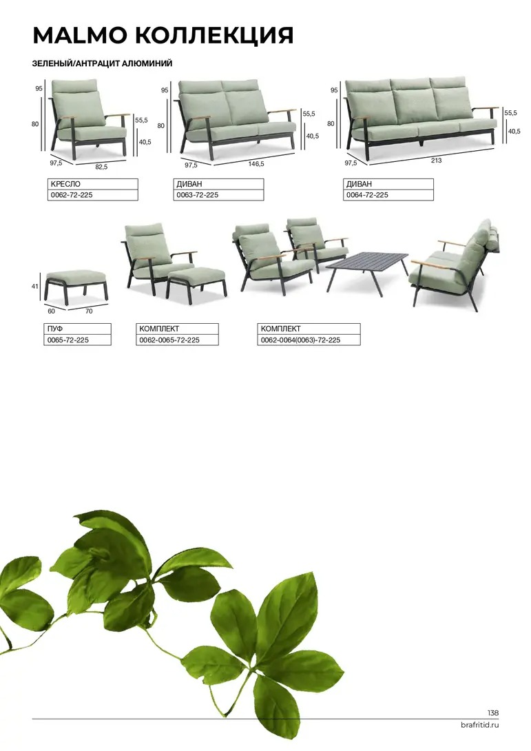 - Особенности: ткань подушек- серый олефин (водостойкая, устойчива к ультрафиолетовому излучению)