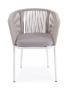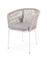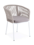 Плетеный стул из коллекции "Марсель" представен в светлых тонах. Каркас из прочного алюминия окрашен порошковой краской в белый цвет, ручная оплетка - роуп бежевого оттенка.