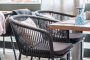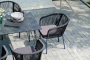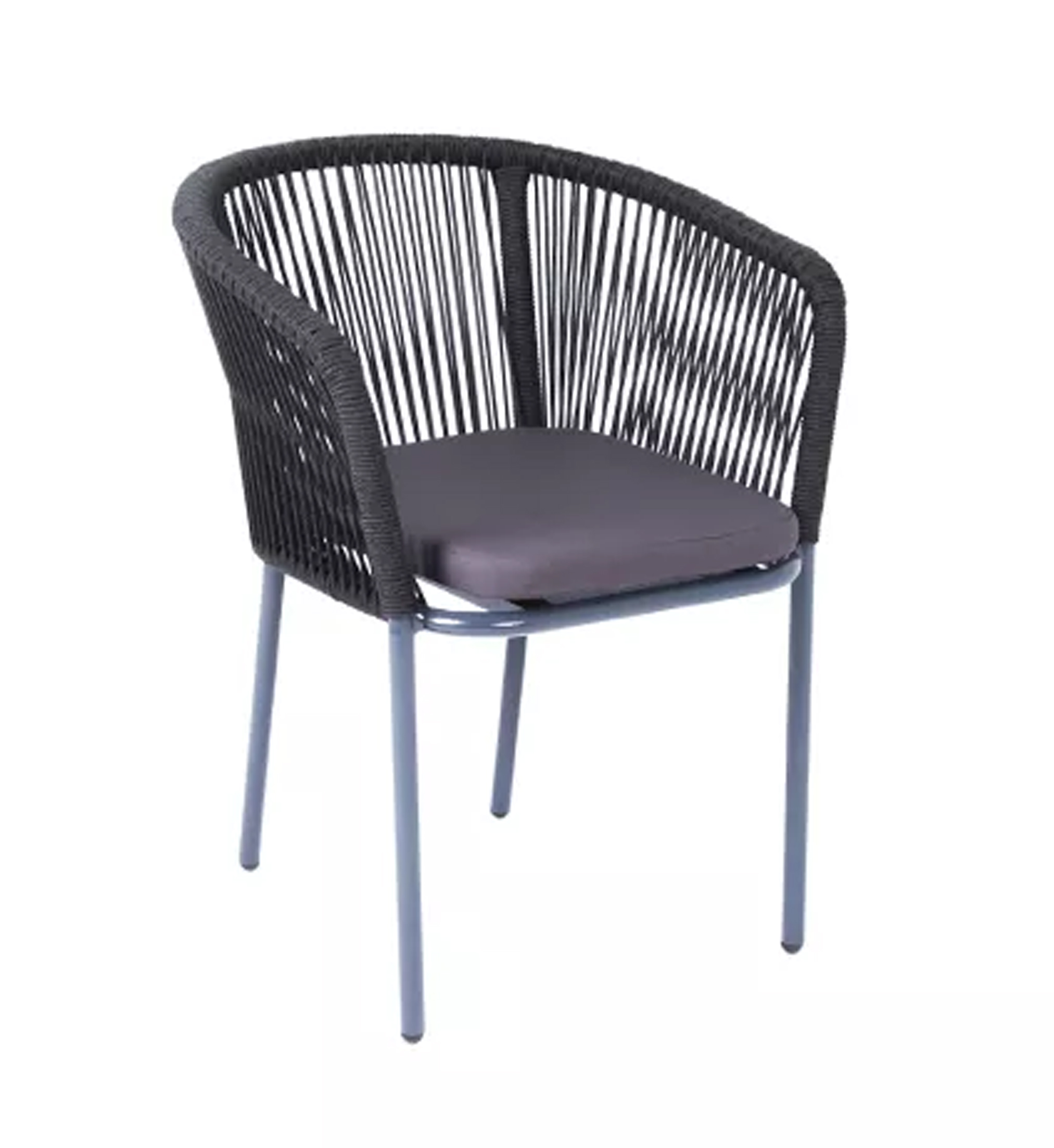 Выполнен из алюминиевого каркаса темно-серого (RAL7024) цвета. Оплетка - современный материал "роуп", которым каркас оплетался вручную.