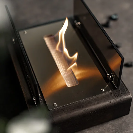 Комплект: биокамин, стекла, отвертка, пламегаситель, 500 мл. биотоплива, каминные спички, инструкция.