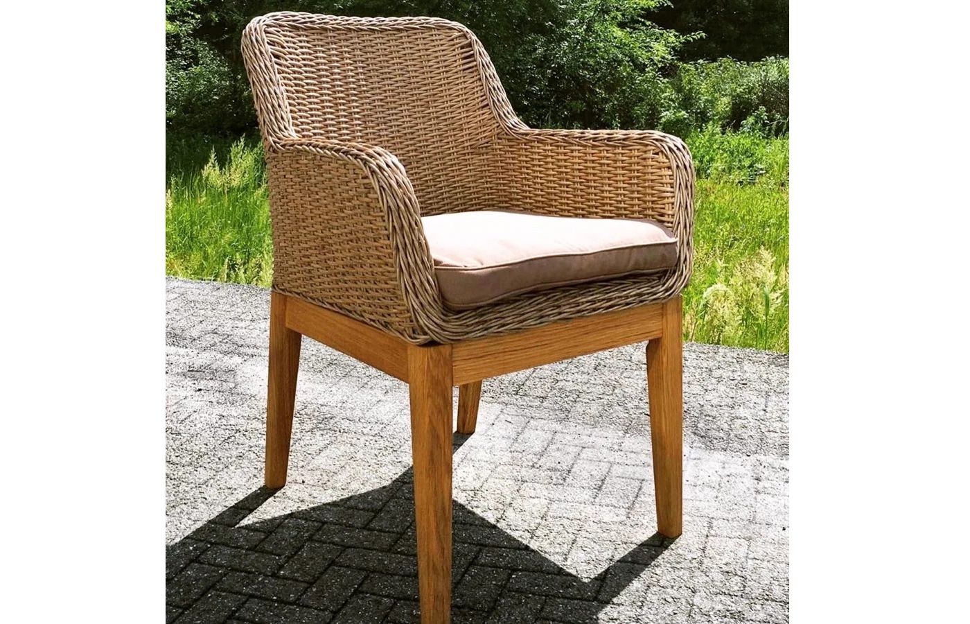 Кресло Mattias выполнено из искусственного ротанга натурального цвета с ножками из массива дуба. Подушка входит в стоимость комплекта.Размеры/Характеристики