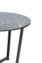 Каркас изготовлен из металла, окрашенного в черный цвет. Столешница - это современный композитный компакт-пластика HPL, толщиной 12 мм. Цвет поверхности приближен к натуральному мрамору. Материал не боится перепадов температур, попадания влаги, агрессивных моющих средств и даже устойчив к любым погодным переменам, поэтому его можно использовать и на улице.
