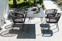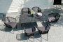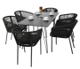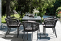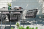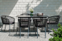 Каркас стульев - алюминиевый, оплетен вручную современным материалом - роупом. Это эластичные синтетические ленты из высокопрочных полиэфирных волокон. В комплект входят подушки со съемными водоотталкивающими чехлами серого цвета. "Руссо" обеденный стол из HPL 150х80см, цвет "черный мрамор" 1шт. 1 500Х800Х750, "Марсель" стул плетеный из роупа, каркас алюминий темно-серый (RAL7024) шагрень, роуп темно-серый круглый, ткань темно-серая 6шт. 570Х620Х800,