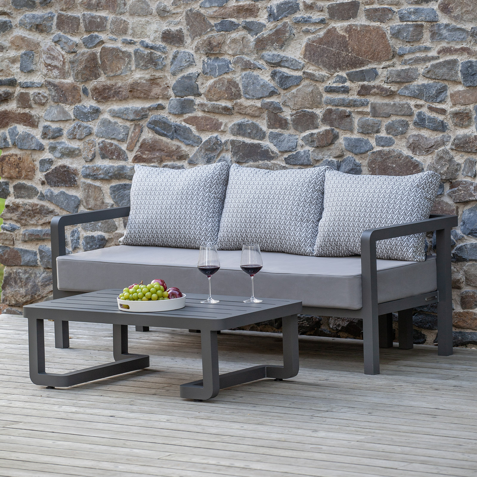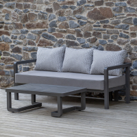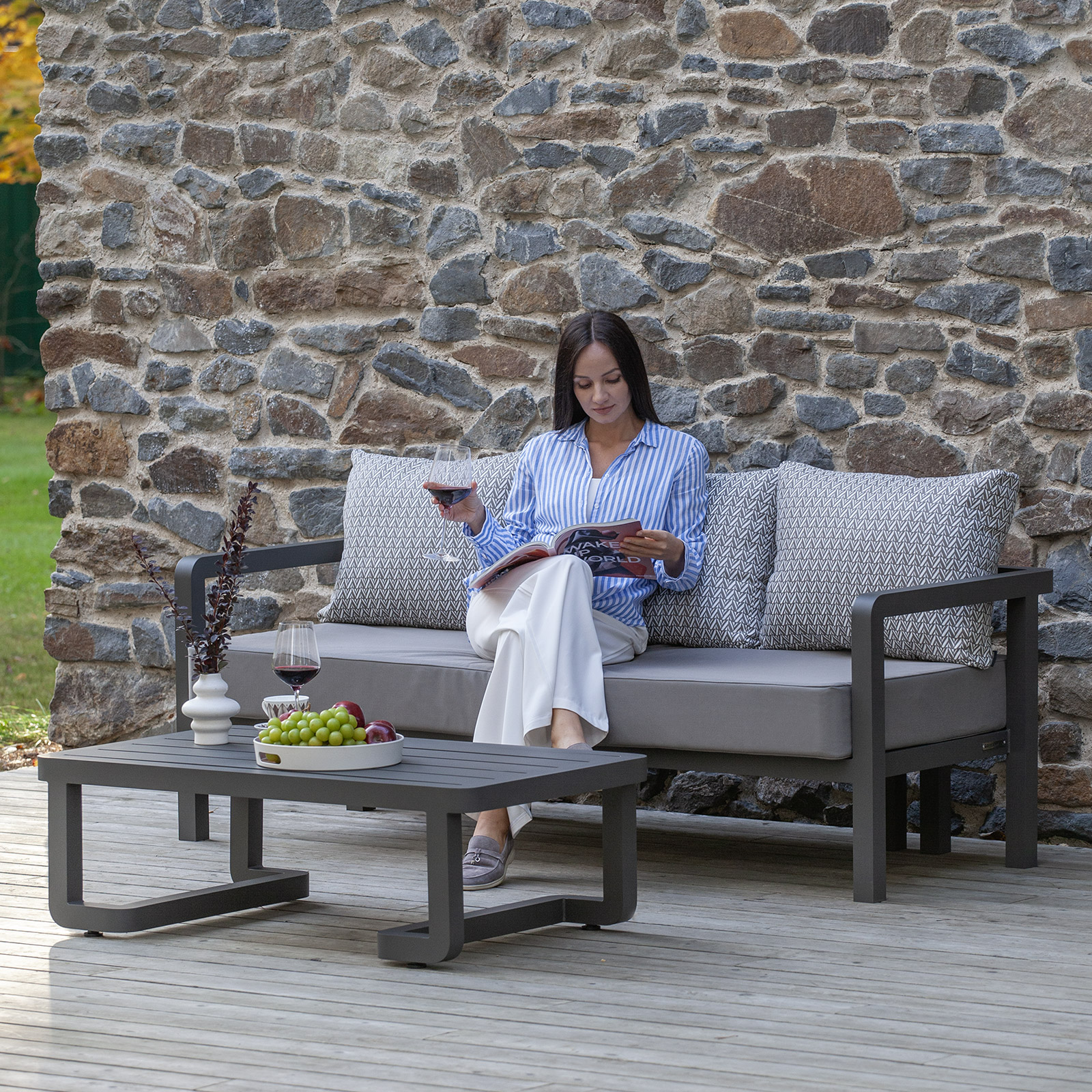 Набор садовой мебели AMALFI сочетает в себе современный дизайн, комфорт и долговечность. Комплект состоит из 2-х предметов: дивана и журнального столика, подойдет для размещения 3 персон.