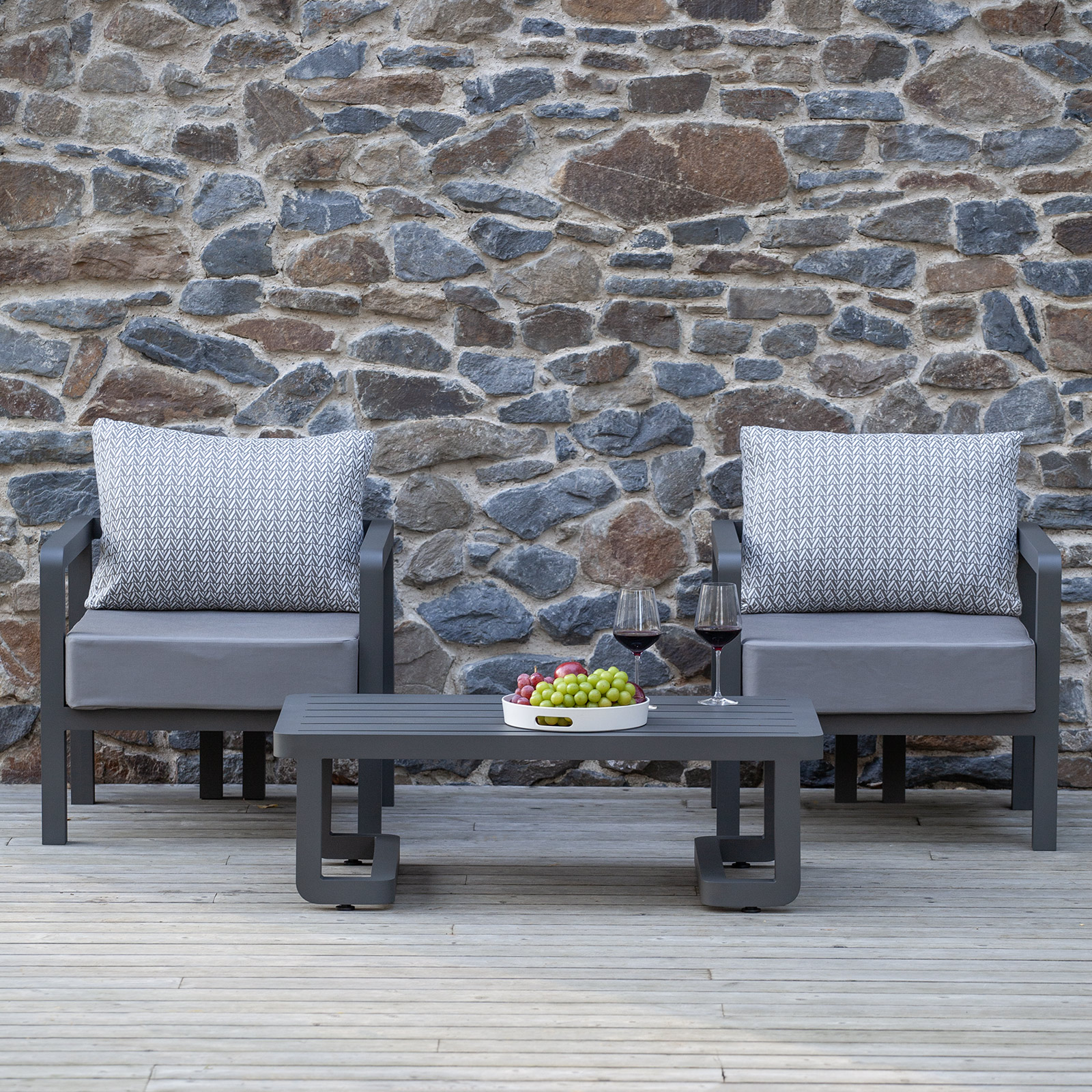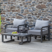 Набор садовой мебели AMALFI сочетает в себе современный дизайн, комфорт и долговечность. Комплект состоит из 3-х предметов: 2 кресла и журнального столика, подойдет для размещения 2-х персон.