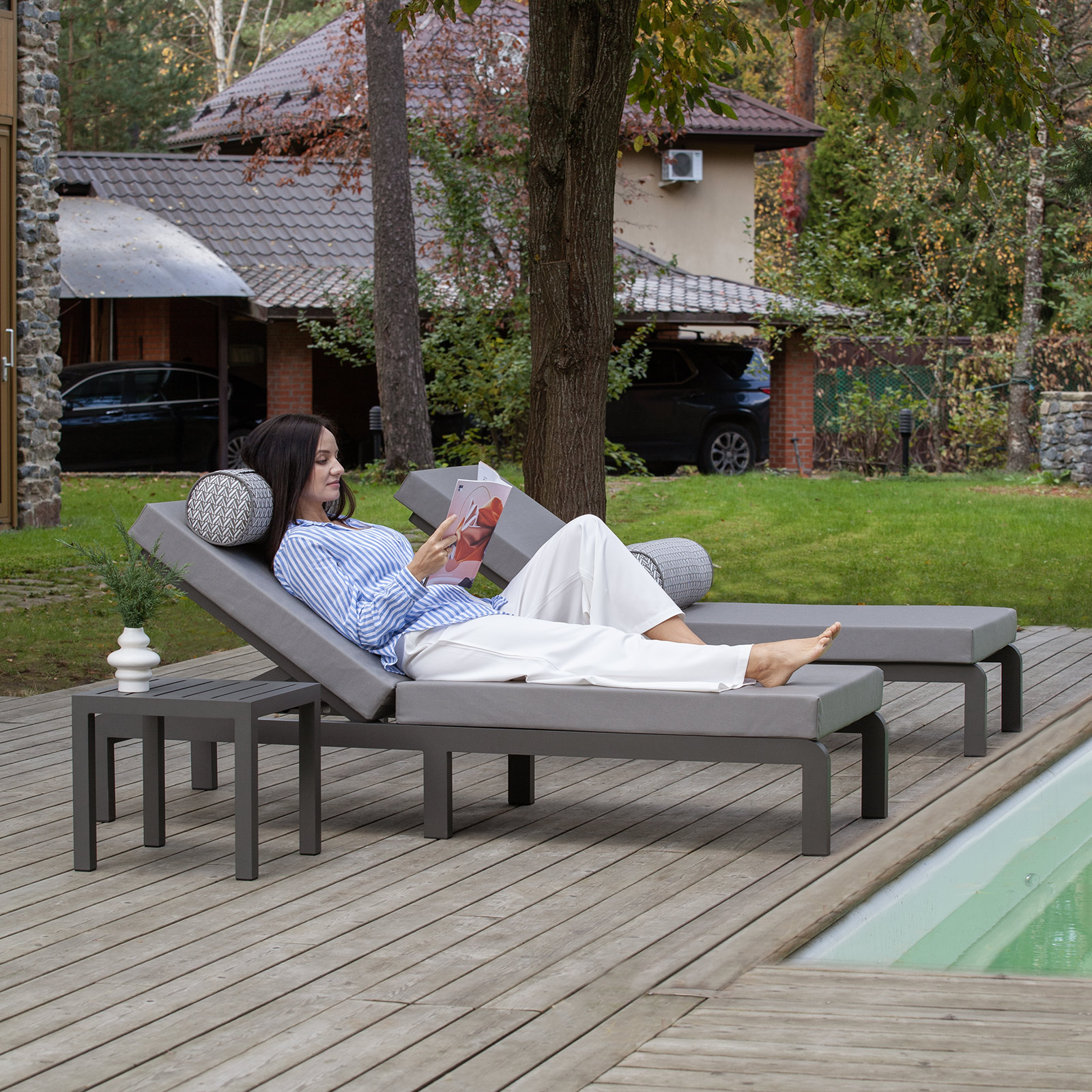 Садовый комплект AMALFI сочетает в себе современный дизайн и максимальный комфорт, идеально подойдет для отдыха на открытой террасе, в лаунж-зоне у бассейна. Набор уличной мебели состоит из 3-х предметов: 2-х шезлонгов и кофейного столика, подойдет для размещения 2 персон.