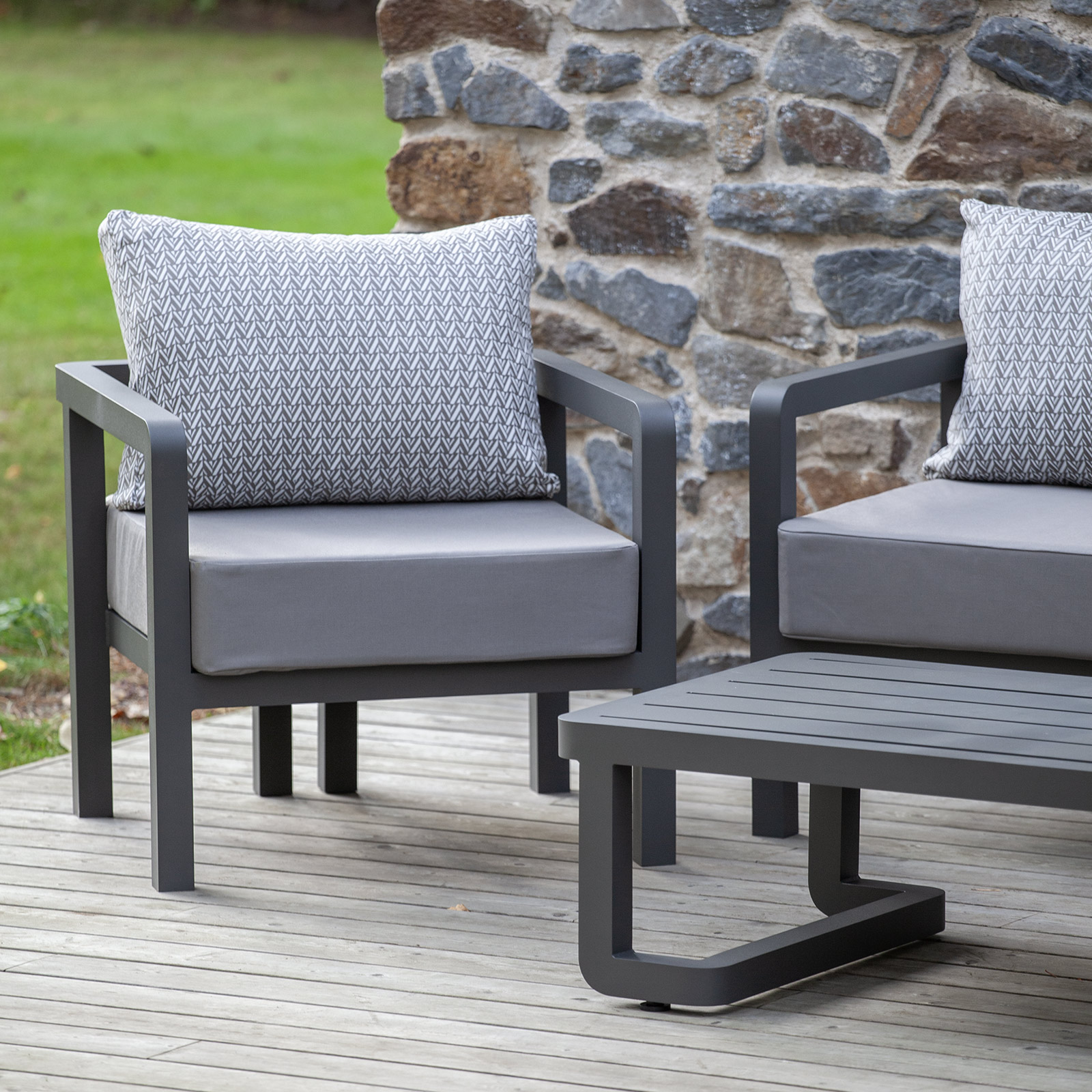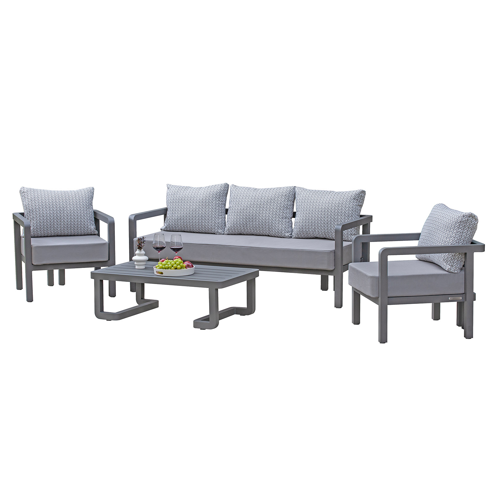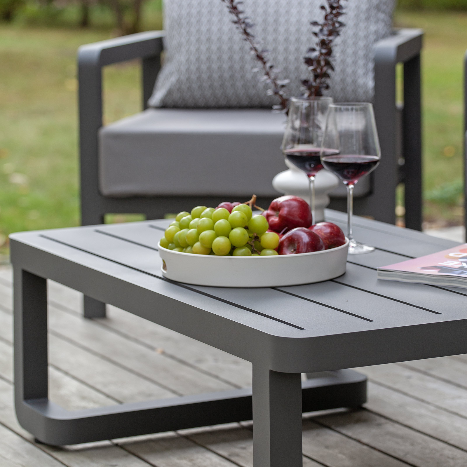 Набор садовой мебели AMALFI сочетает в себе современный дизайн, комфорт и долговечность. Комплект состоит из 4-х предметов: диван, 2 кресла и журнальный столик, подойдет для размещения 5 персон.