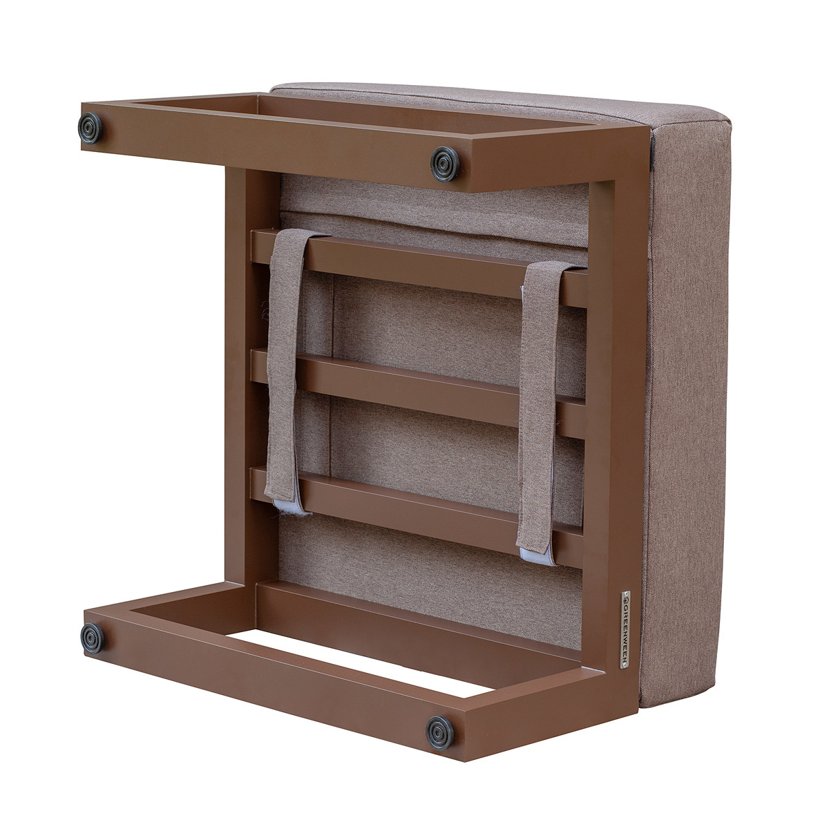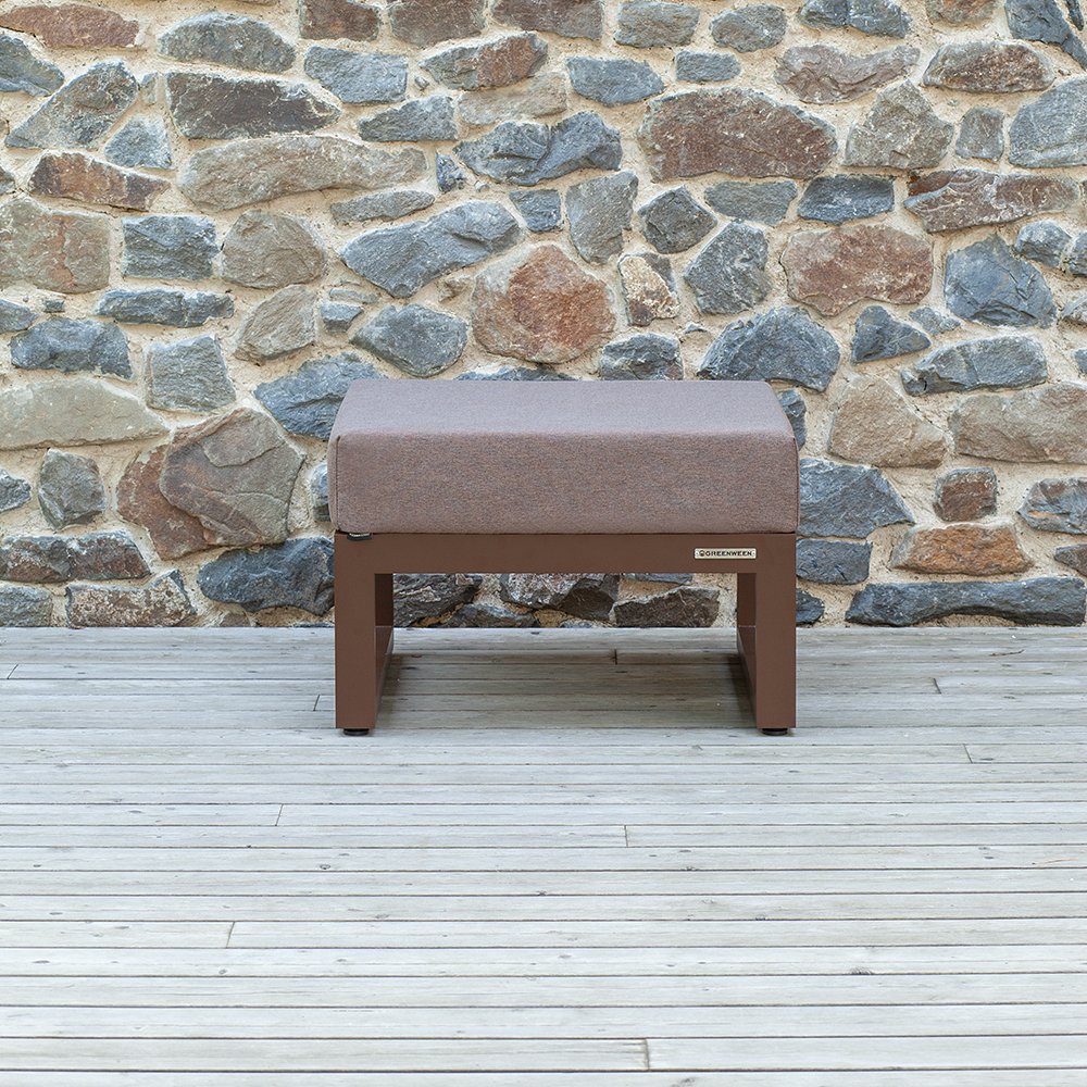 Каркас мебели изготовлен из алюминиевой профильной трубы 60х40 мм на высокоточном лазерном оборудовании. Металлическое основание с матовым полимерным покрытием коричневого цвета характеризуется повышенной прочностью, устойчивостью к царапинам. Профессиональная порошковая покраска надолго сохранит внешний вид мебели. Регулируемые по высоте ножки позволяют устанавливать мебель на неровной поверхности.