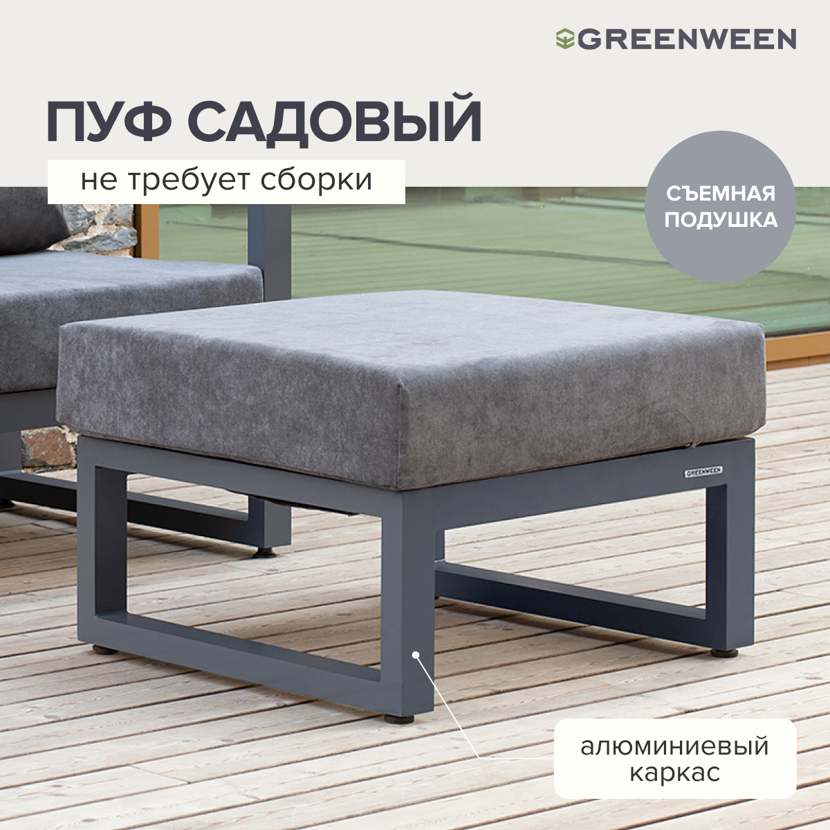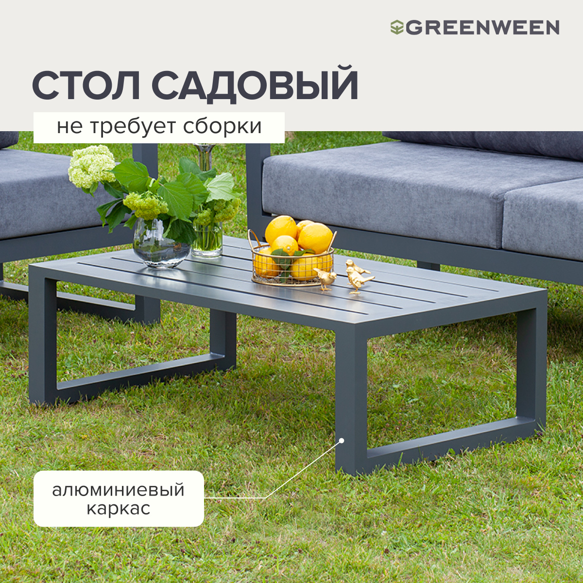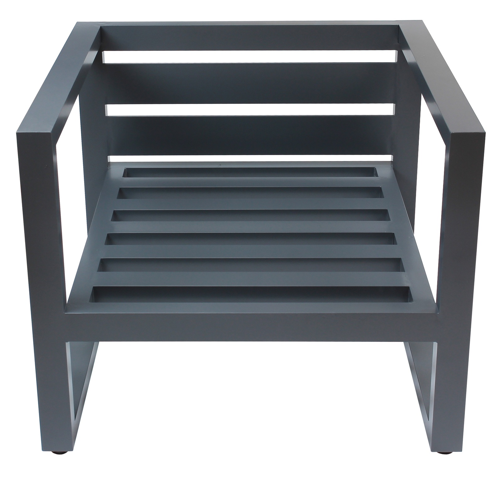 Каркас мебели изготовлен из алюминиевой профильной трубы 60х40 мм на высокоточном лазерном оборудовании. Металлическое основание с матовым полимерным покрытием темно-серого цвета характеризуется повышенной прочностью, устойчивостью к царапинам. Профессиональная порошковая покраска надолго сохранит внешний вид мебели. Регулируемые по высоте ножки позволяют устанавливать мебель на неровной поверхности.