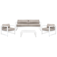 Комплект уличной мебели CAPRI создает комфортное пространство для отдыха в саду, на террасе, у бассейна. В наборе представлены диван, два кресла, и журнальный столик. Каркас мебели выполнен из высокопрочного алюминия, на сиденьях предусмотрены удобные подушки пепельно-коричневого оттенка.