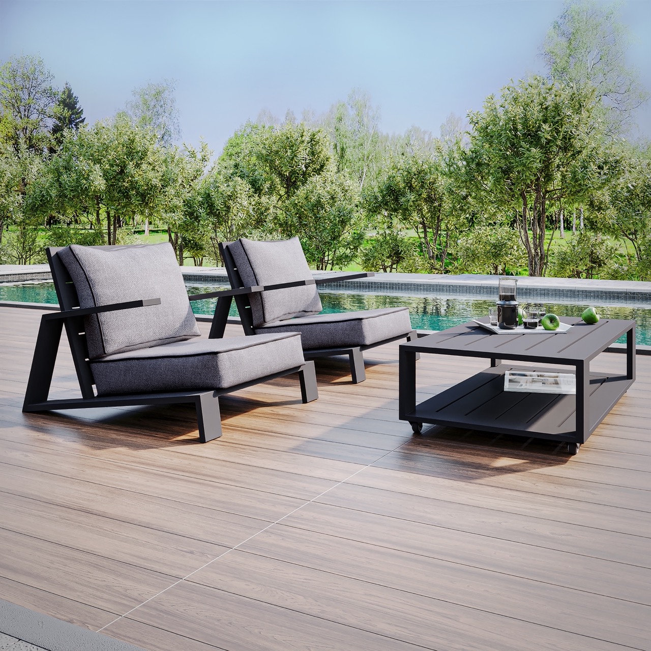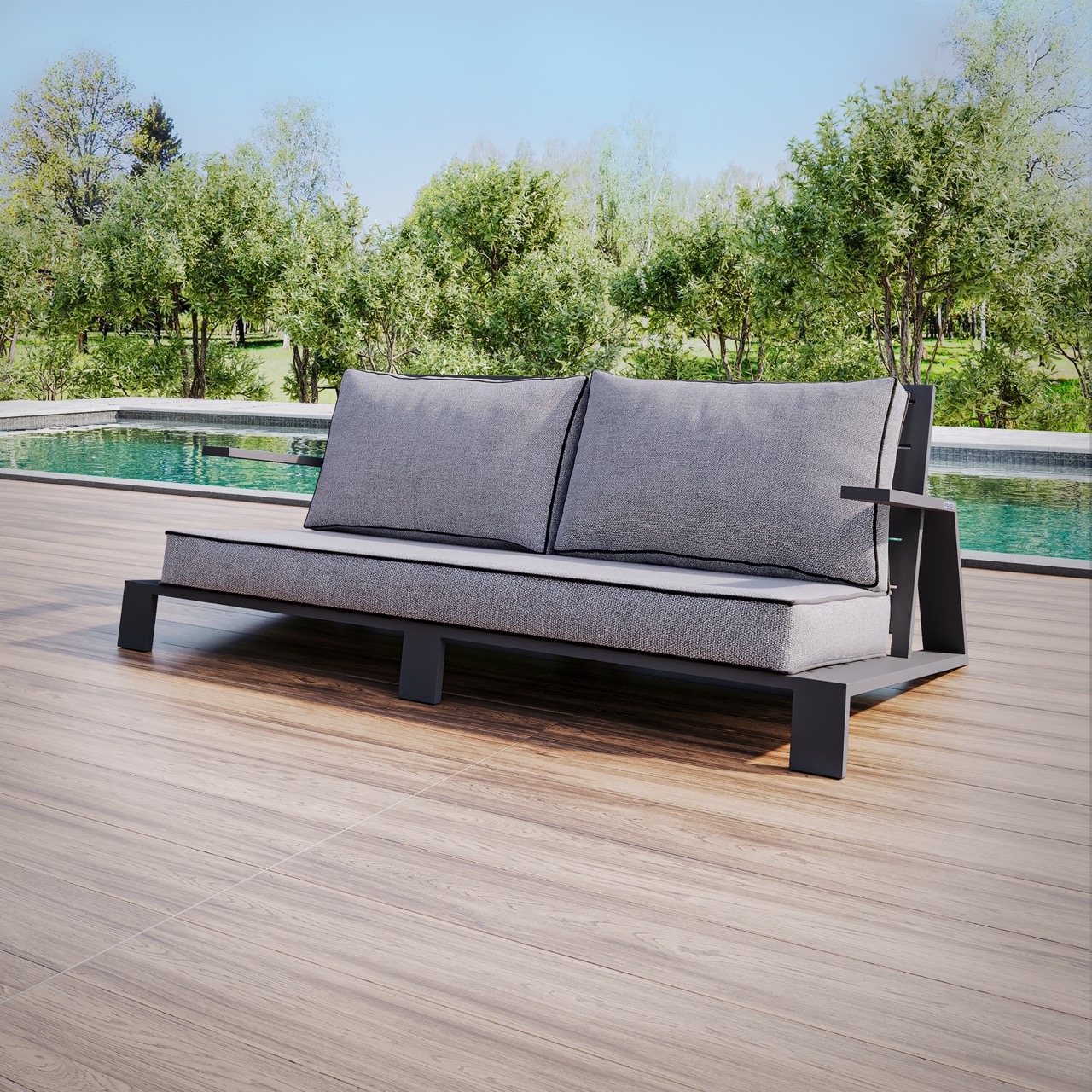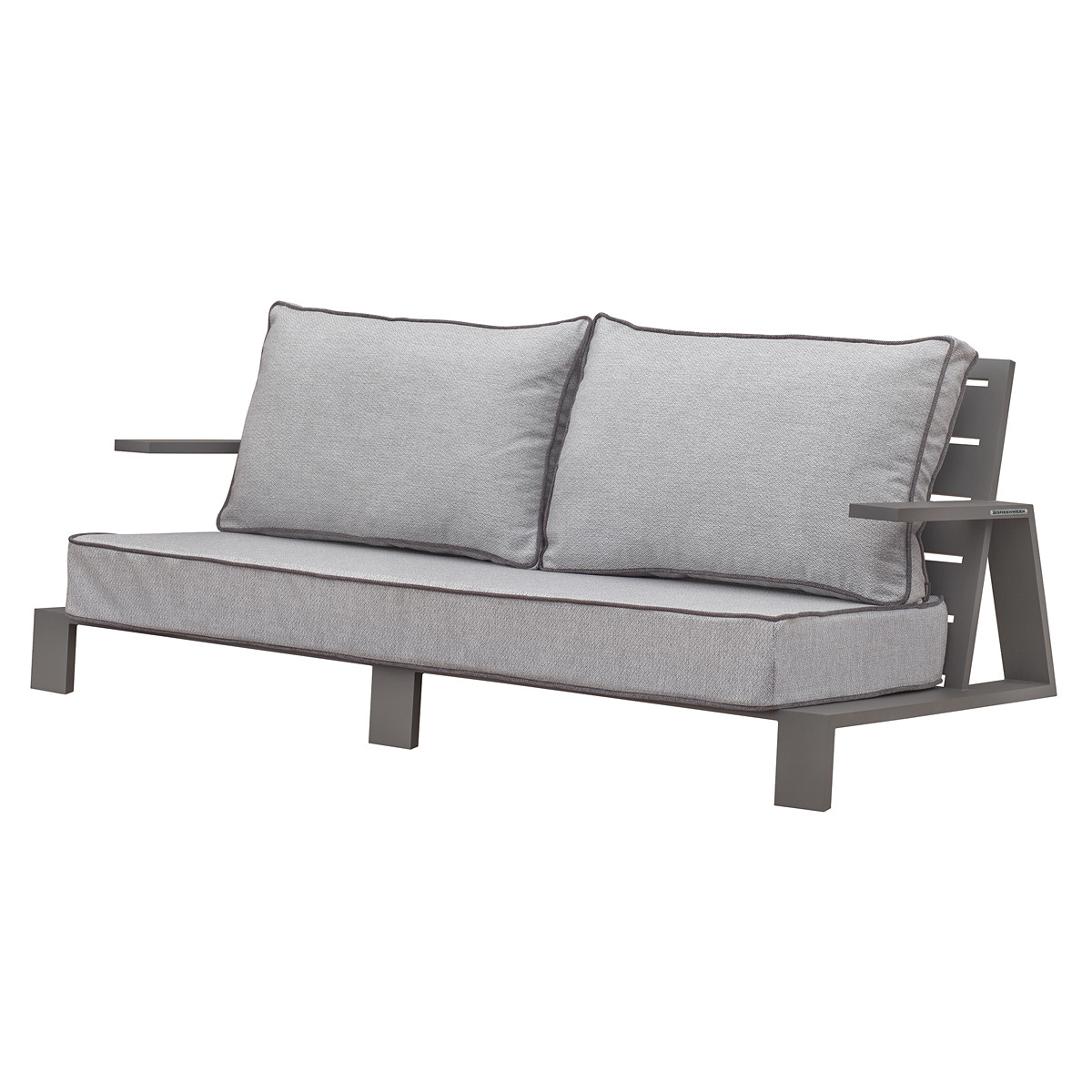 Комплект уличной мебели KORFU привлекает внимание современным дизайном и долговечностью. В большом наборе представлено 4 предмета: диван, 2 кресла и журнальный столик, подойдет для размещения 4-5 человек. Алюминиевая мебель отличается долгим сроком службы, подходит для использования на улице и в помещении, можно разместить на открытой террасе, у бассейна и водоема, в саду и беседке.