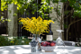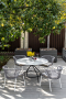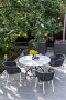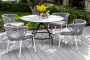 Обеденный стол «Ницца» с изящной плетеной ножкой из прочного металла, окрашенного в черный цвет.