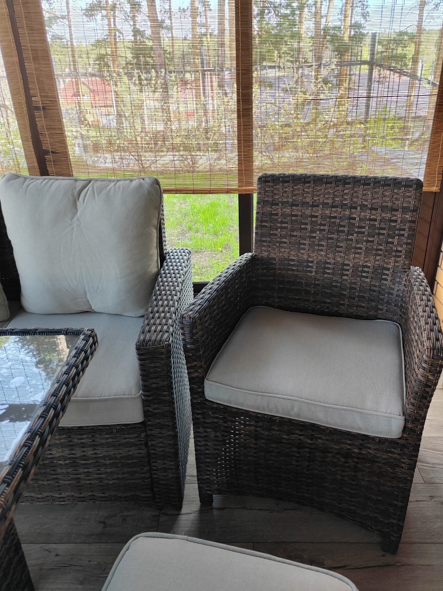 - Материал комплекта - искусственный ротанг (ручного плетения)