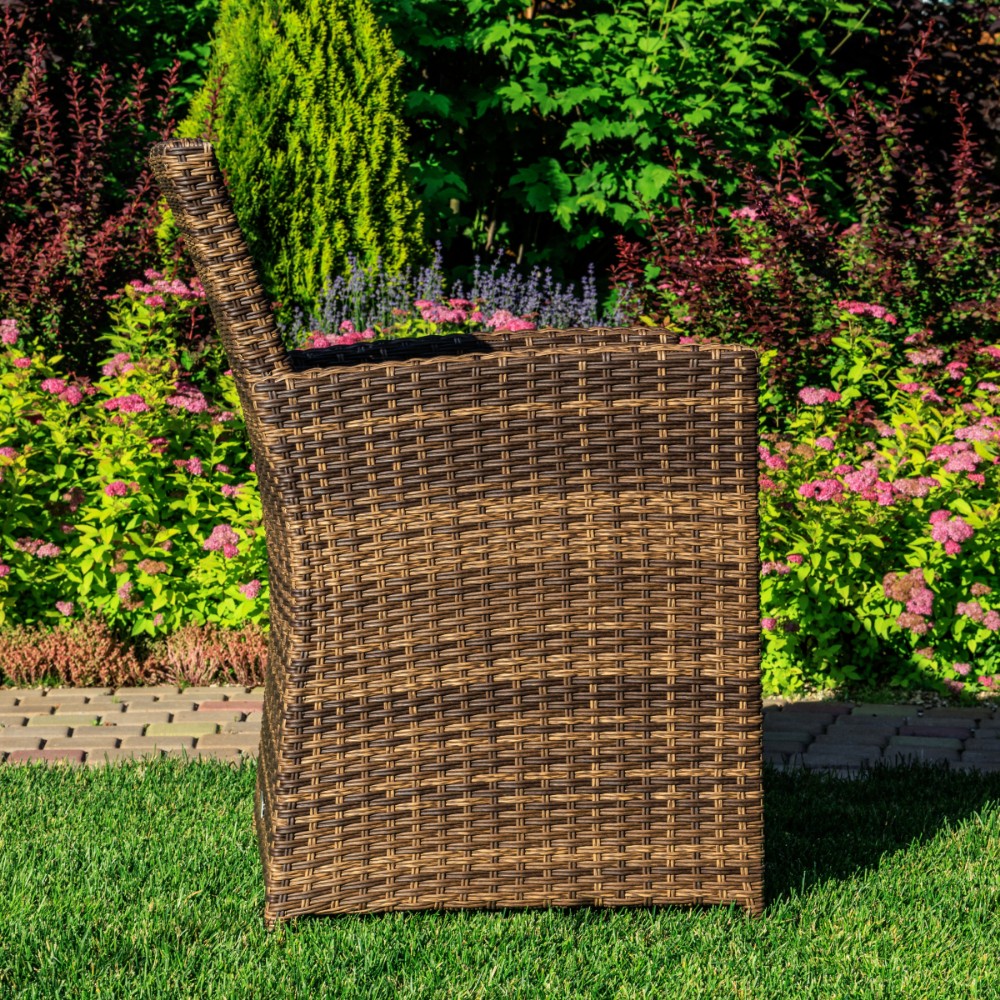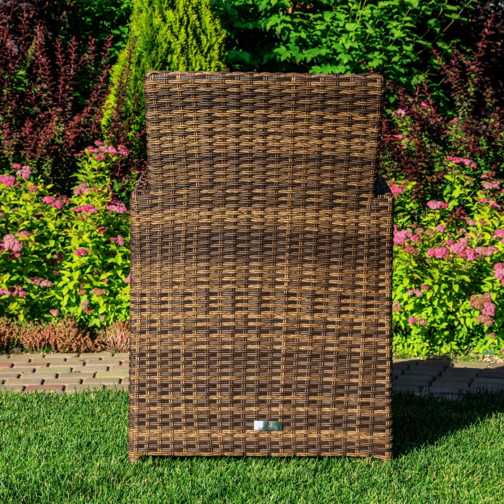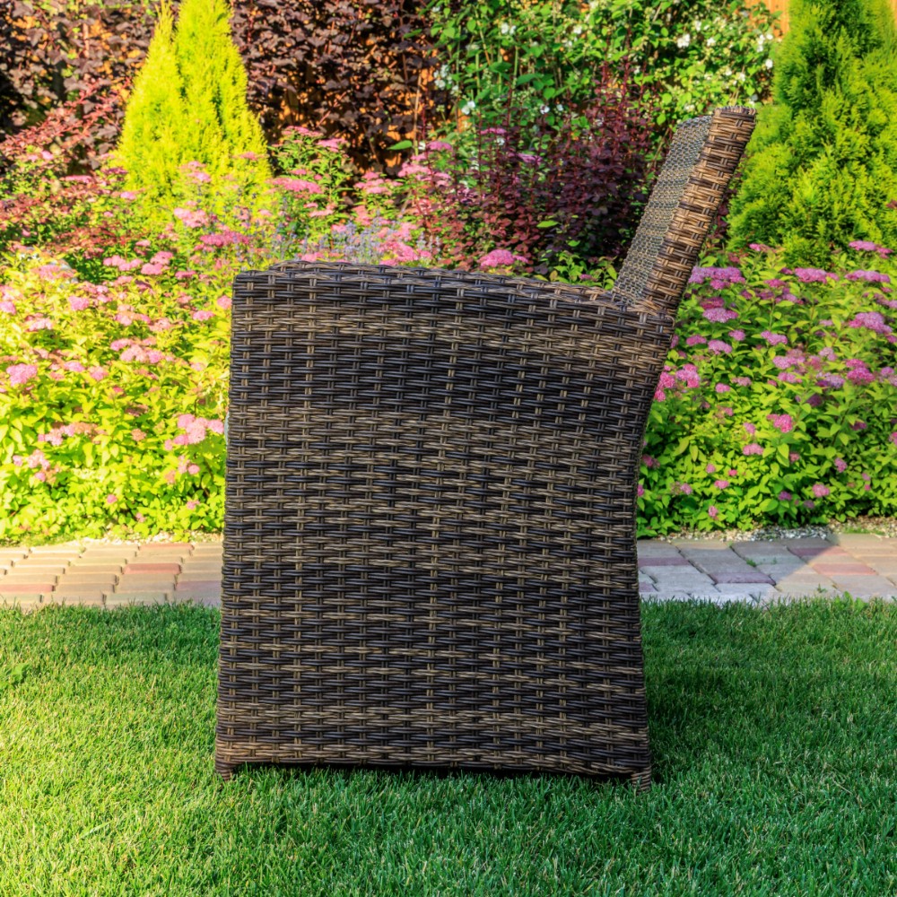 Обеденное кресло из комплекта FIONA, размеры 67x61x89. Стальной каркас, полукруглое двойное плетение ручной работы. Цвет плетения - коричневый. Нагрузка на посадочное место - 150 кг.