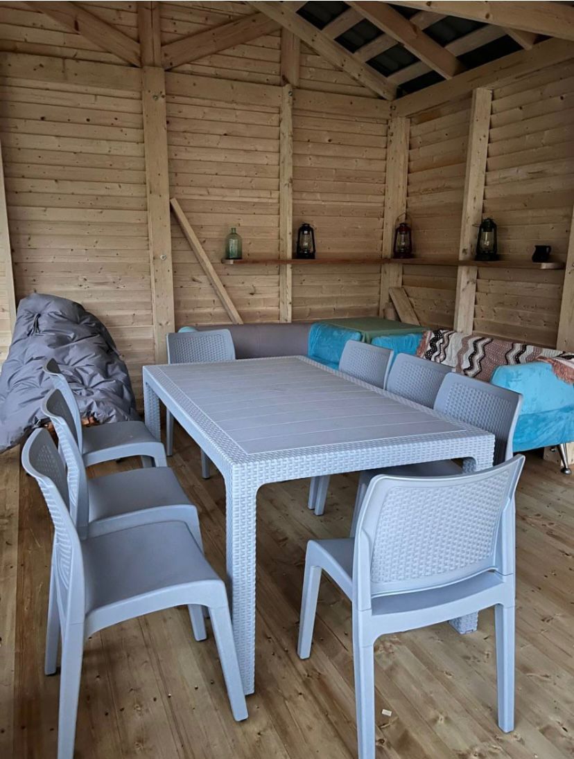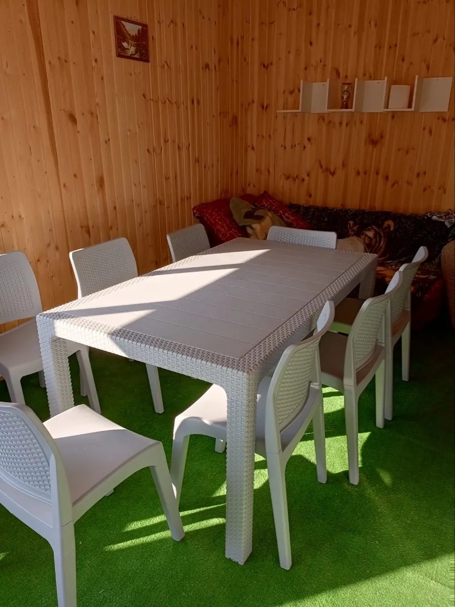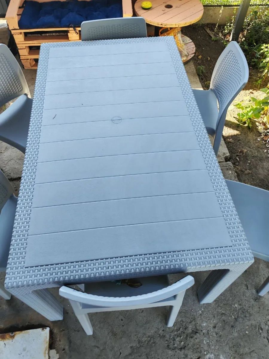 Создайте уютную обеденную зону для большой компании с восьмиместным комплектом в стильном светло-сером исполнении. В набор входит: