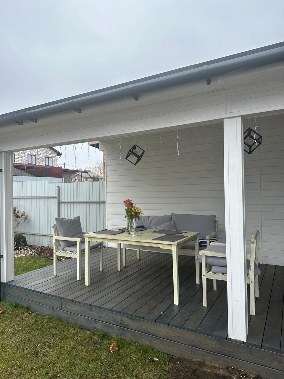 Обеденный комплект Royal Family SIERRA — компактное и стильное решение для четырех человек. Белая мебель из акации с серыми подушками выглядит элегантно и гармонично. Комплект включает двухместный диван, два кресла и обеденный стол, создавая уютное пространство для отдыха.