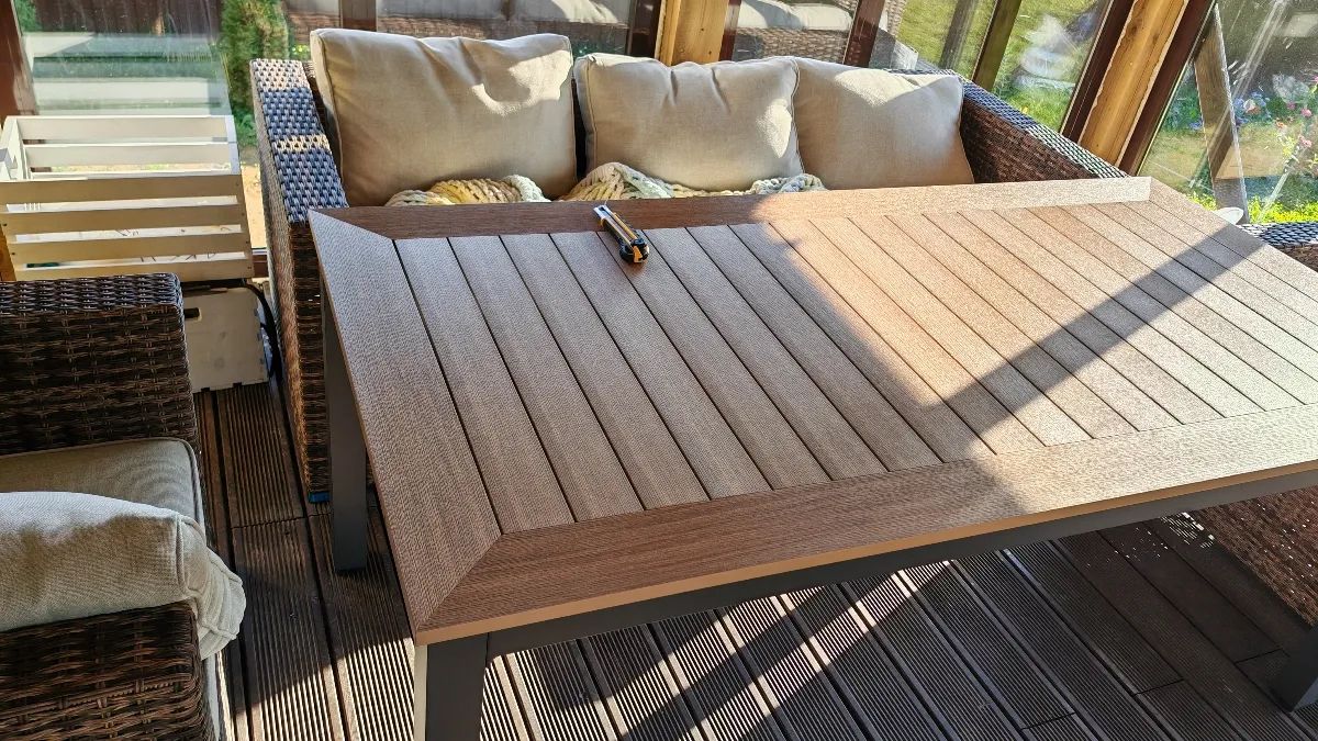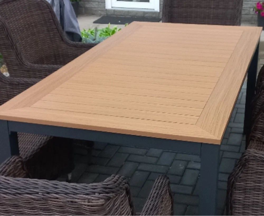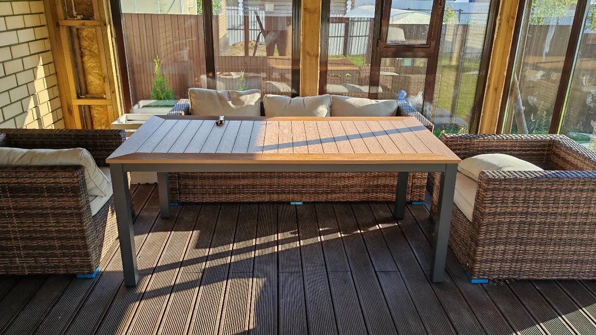 Представляем обеденный стол OSCAR – элегантное сочетание прочного алюминиевого каркаса и столешницы из качественного поливуда. Стильный дизайн и прочные материалы делают его идеальным выбором для вашего обеденного пространства.