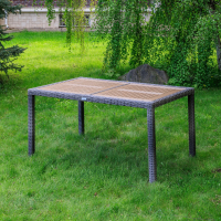 Искусственный ротанг ручного плетения придает столу особую изысканность, а пластиковые накладки на ножках защищают поверхности от повреждений, что делает его идеальным для использования на террасе, в саду или даже на балконе.