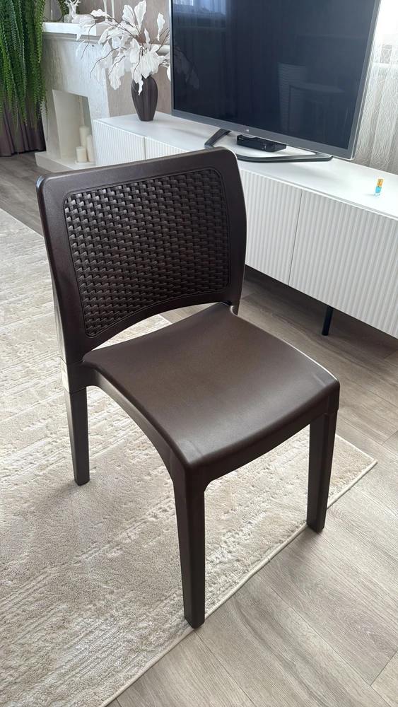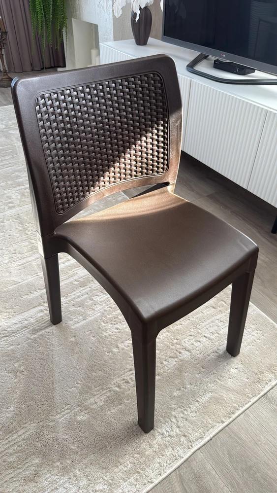 Обеденный стул Royal Family JULY в коричневом цвете сочетает прочность и современный стиль. Изготовленный из окрашенного в массе полипропилена с повышенной прочностью, этот стул отличается долговечностью и стойкостью к внешним воздействиям, сохраняя привлекательный вид в любых условиях.