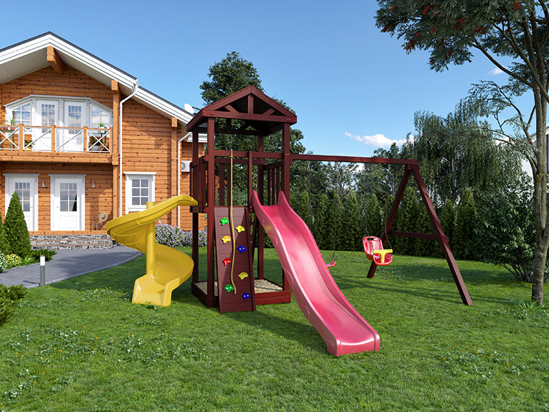 Комплектация детской площадки "ПАНДА ФАНИ С ВИНТОВОЙ ГОРКОЙ":