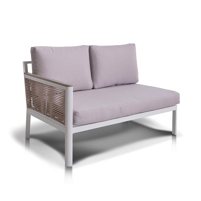 "Париж" модуль диванный правый изготовлен из алюминиевого каркаса белого цвета. Боковины оплетены роупом - эластичными лентами из полиэфирных волокон, цвет бежевый.