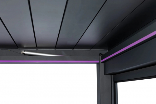 Встроенная LED-подсветка с теплым и холодным светом создает уютную атмосферу в вечернее время, превращая террасу, патио или зону отдыха в многофункциональное пространство для любого времени суток. Дополнительные опции - раздвижные стеклянные панели, боковые шторы, жалюзи и экраны - обеспечивают защиту от ветра, дождя и посторонних взглядов, гарантируя комфорт и приватность в любую погоду.