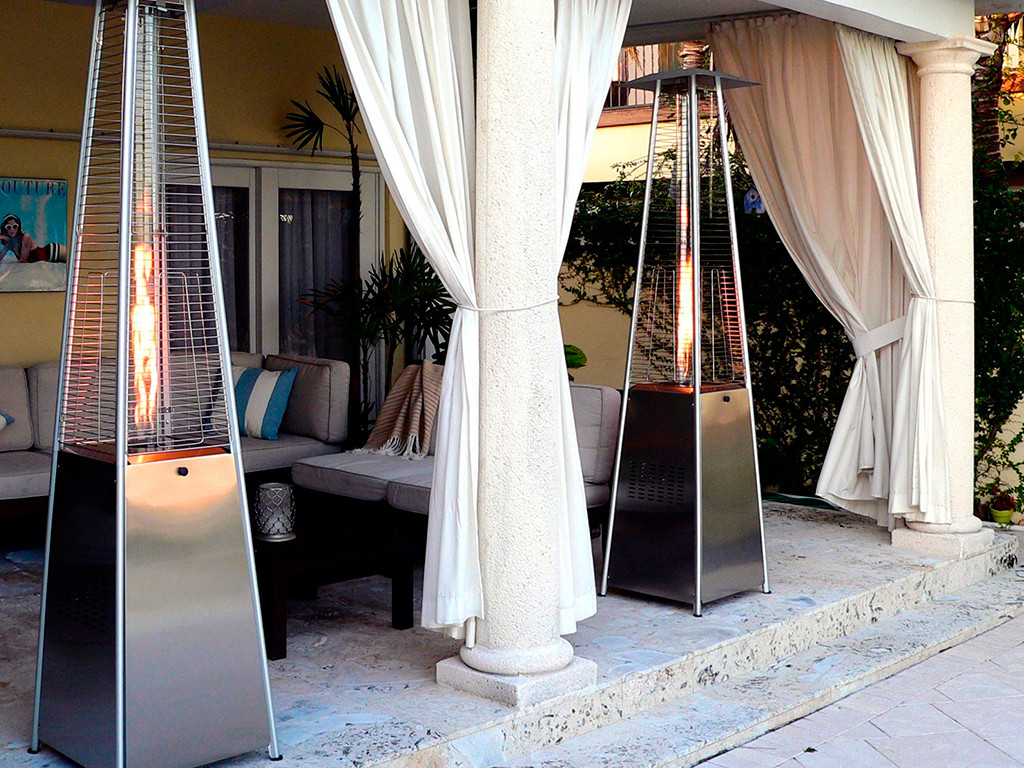 Уличный газовый обогреватель "Пирамида" ML-5 , цвет сталь, напольный, для террасы или веранды, высота 2,25 м
