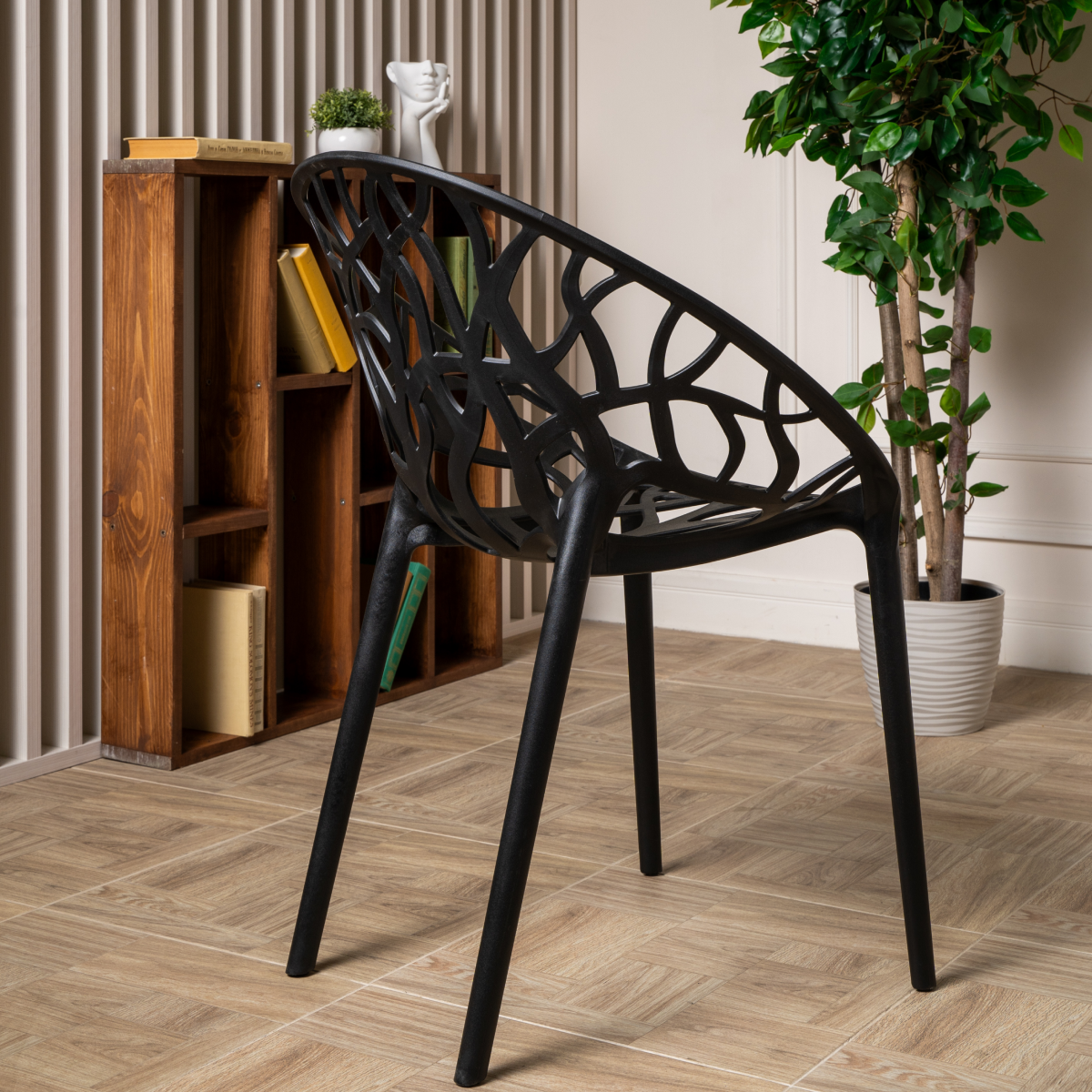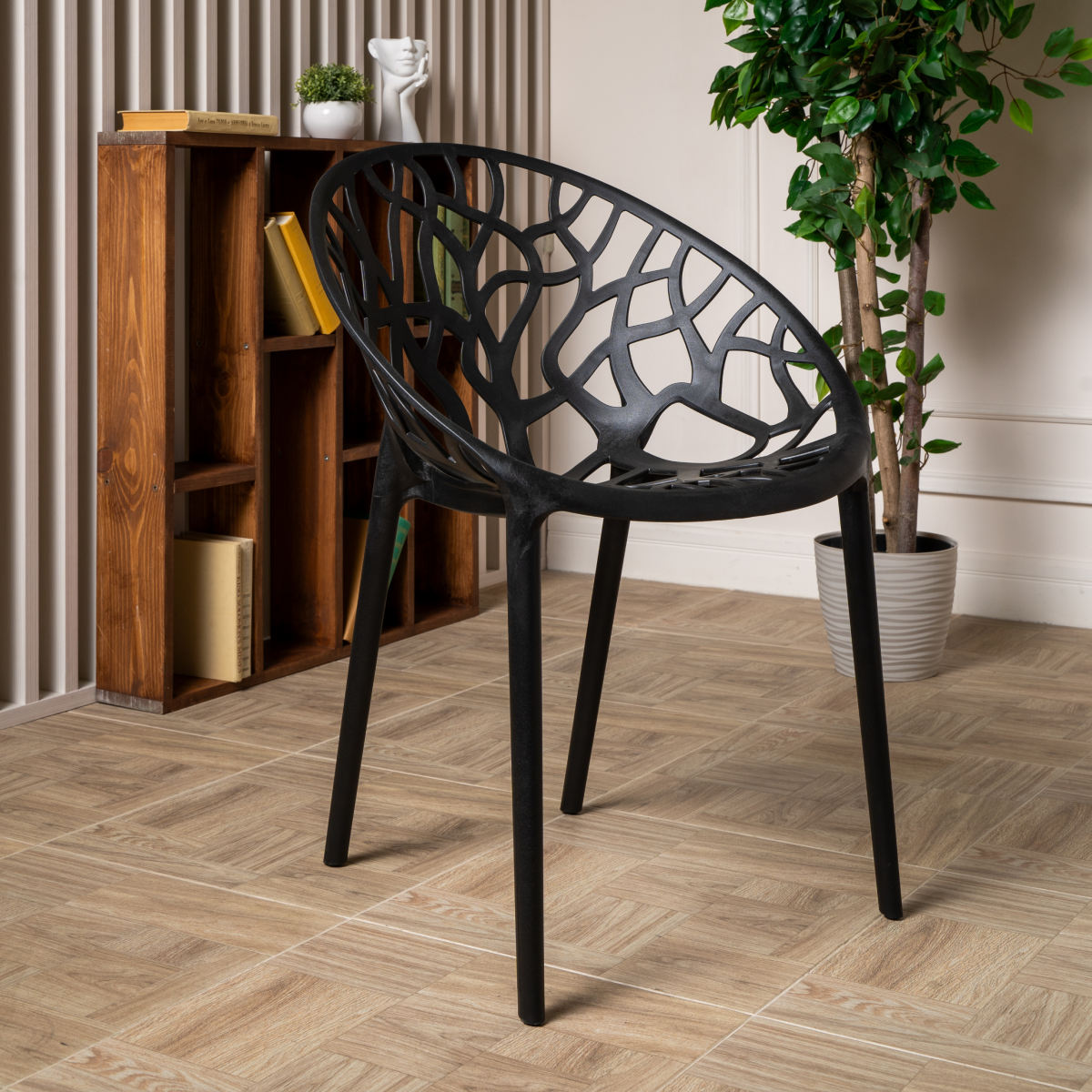 Стул RoyalFamily Aria (Ария) черный — это стильная и прочная модель, которая добавит в ваш интерьер утонченную нотку и элегантность. Изготовленный из армированного полипропилена, он обладает высокой устойчивостью к внешним воздействиям и перепадам температур, что делает его подходящим как для использования внутри помещений, так и на улице. Черный цвет придает стулу мягкость и свежесть, гармонично вписываясь в любые стилистические решения. Стул выдерживает нагрузку до 120 кг, сохраняет свои качества при температурах от -50°C до +50°C и прослужит вам до 10 лет, сочетая практичность с изысканным дизайном.
