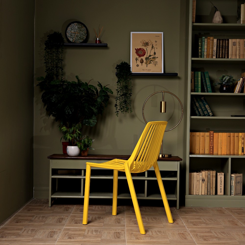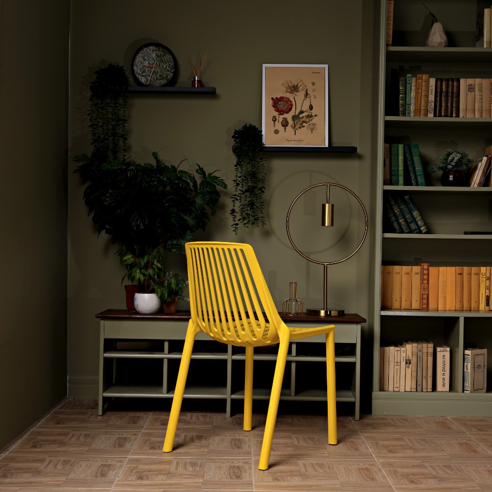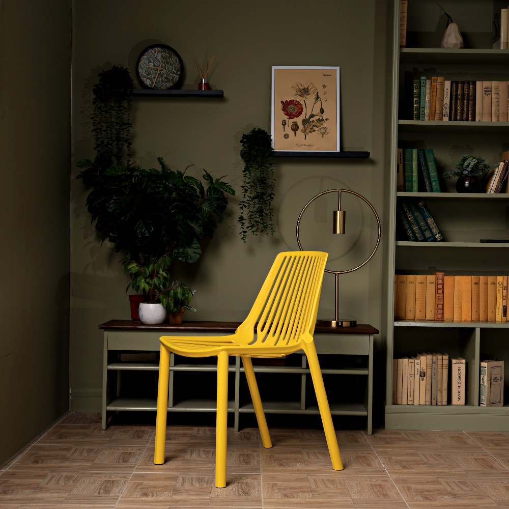 Стул RoyalFamily Nico (Нико) желтый — это стильная и практичная модель, которая идеально подходит для дома, сада, кафе или фудкорта. Изготовленный из прочного армированного полипропилена, он обладает высокой устойчивостью к внешним воздействиям и перепадам температур, что делает его универсальным выбором для любого пространства. Желтый цвет придает стулу современный и утонченный вид, который легко впишется в различные интерьерные и экстерьерные решения. Выдерживая нагрузку до 120 кг и оставаясь надежным при температурах от -50°C до +50°C, стул RoyalFamily Nico обеспечивает комфорт и долговечность на долгие годы.