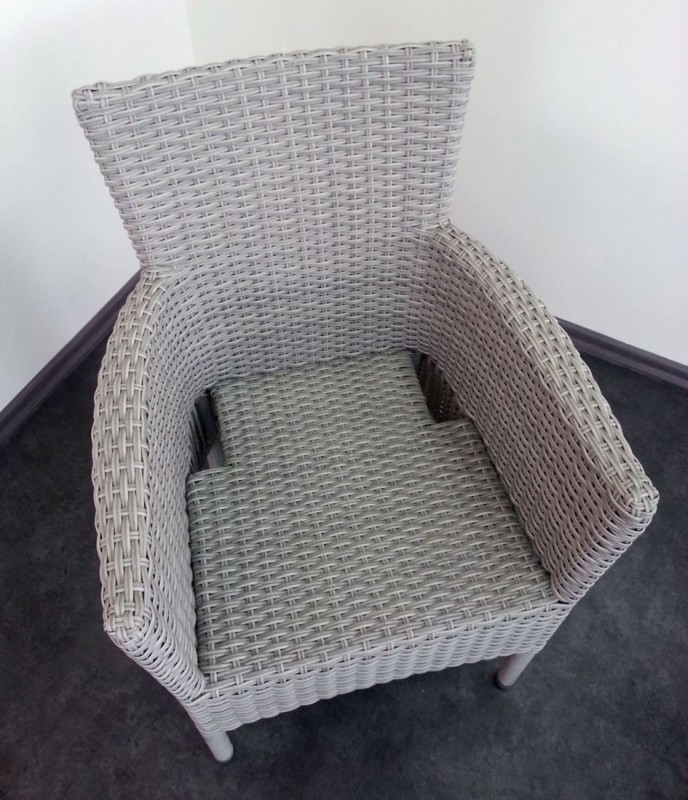 Плетеное кресло Capri из искуственного ротанга двойного полукруглого плетения. Кресло штабелируется. Цвет серый, подушка серого цвета включена в стоимость. Размеры: