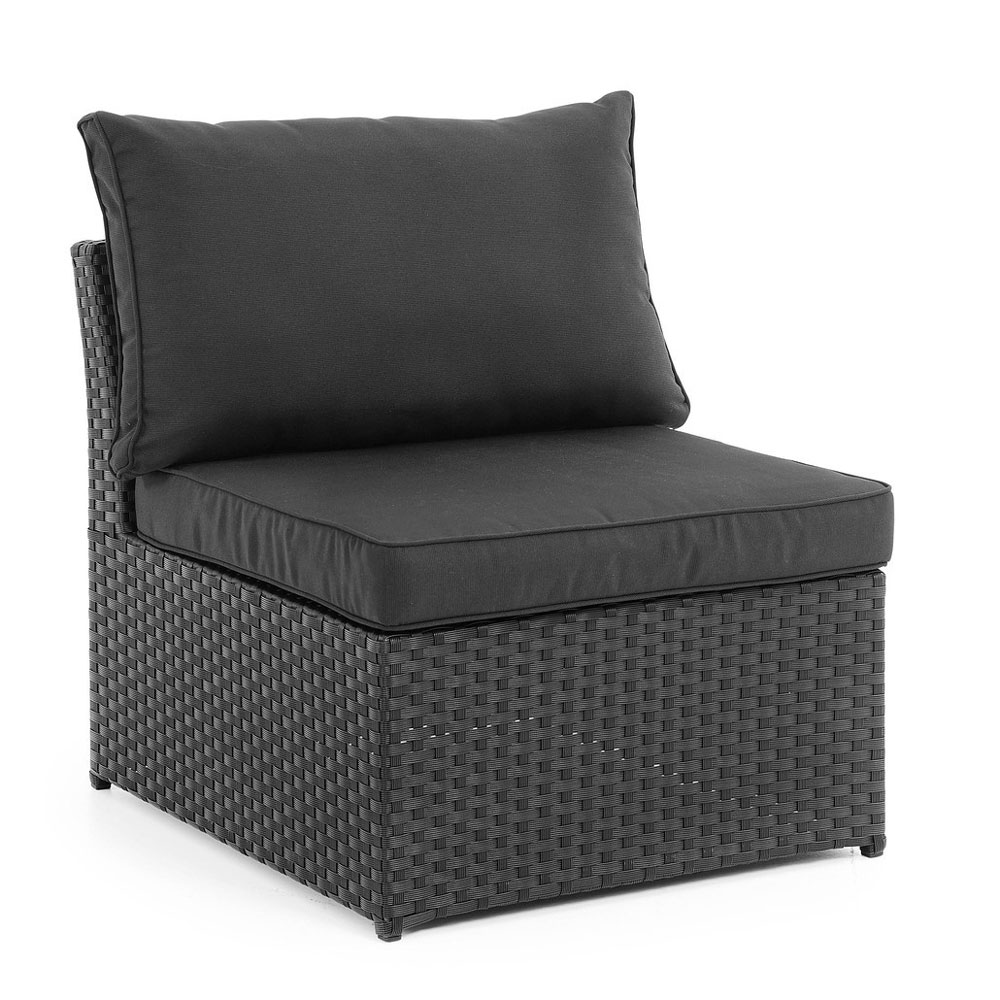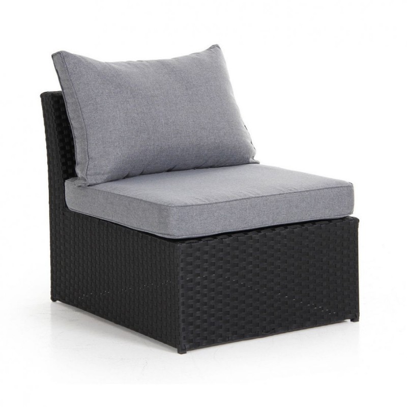 Плетеный диван Wisconsin, центральная секция, искусственный ротанг, алюминиевый каркас, цвет серый, размер 65х80х67 см, черные подушки в комплекте.