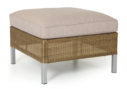 Пуф из коллекции Pomona натурального цвета. Выполнен из искусственного ротанга на стальном каркасе. В комплекте с пуфом идут подушки бежевого цвета