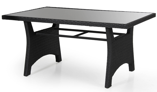 Плетеный стол из искусственного ротанга Callas со стеклянной столешницей черного цвета. ОЧень удачный и практичный стол для дачи.