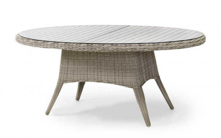 Плетеный стол San Diego овальный из искусственного ротанга, алюминиевый каркас, светло-бежевый, размер 180х115х74 см, стеклянная столешница